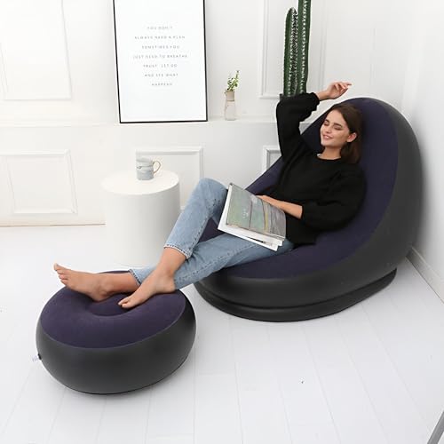 Generic - كرسي استرخاء قابل للنفخ - اريكة هوائية محمولة مع مضخة مدمجة لغرفة المعيشة الداخلية او غرفة النوم او التخييم في الهواء الطلق والنزهات والسفر، مقعد خفيف الوزن ومريح