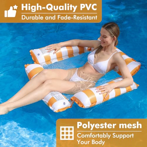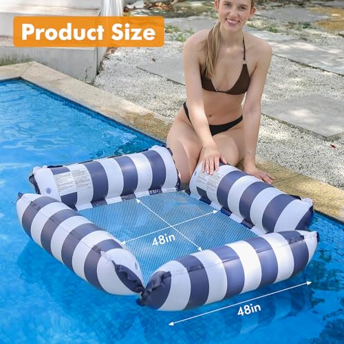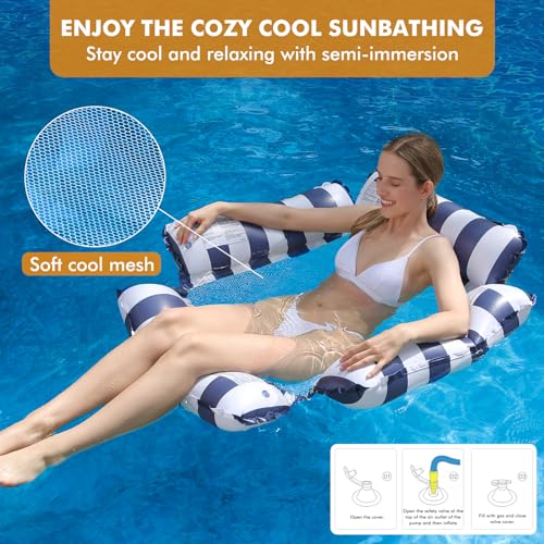 ROUSKY - كرسي عائم بنقشة مخططة قابل للنفخ للاسترخاء في حمامات السباحة أو أرجوحة عائمة ولحفلات المسابح ومتعة الصيف المائية للكبار والصغار