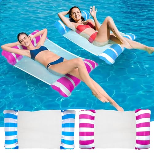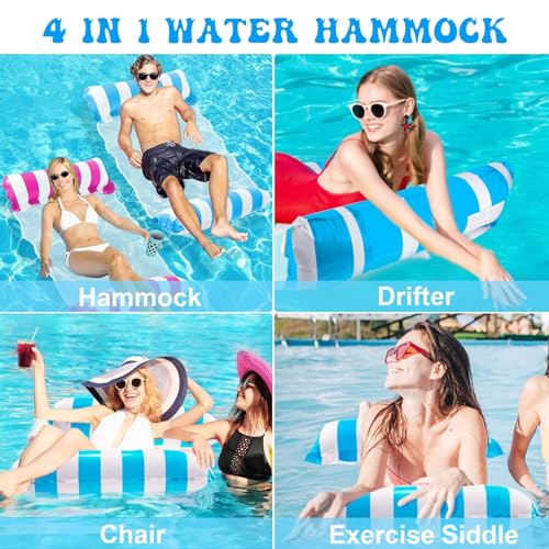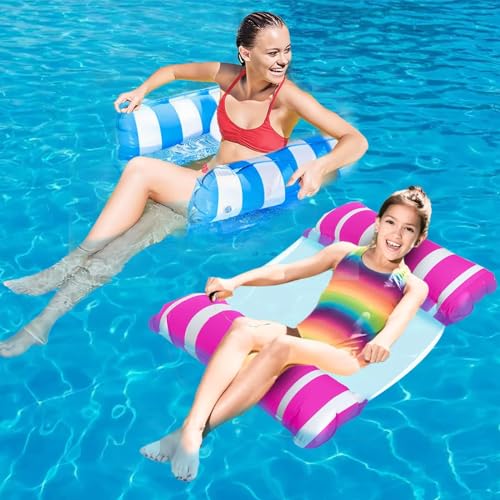 Itiban - عوامات حوض سباحة قابل للنفخ مريحة، كرسي عائم محمول متعدد الأغراض (سرج، كرسي استرخاء، مرجيحة، عوامة)، لون وردي + أزرق سماوي