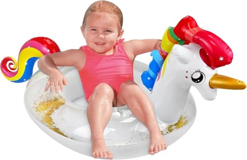 Generic - عوامة حمام سباحة بتصميم يونيكورن قابلة للنفخ، ألوان قوس قزح، أبيض 70 سم.