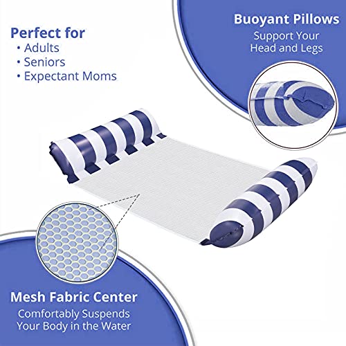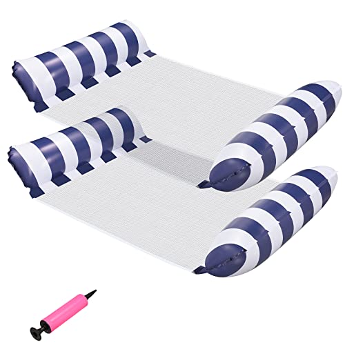 XZSUN - أرجوحة مائية قابلة للنفخ من قطعتين، كرسي عائم محمول لحمام السباحة والشاطئ (أزرق غامق + أزرق غامق)