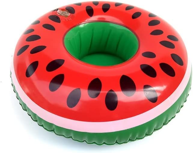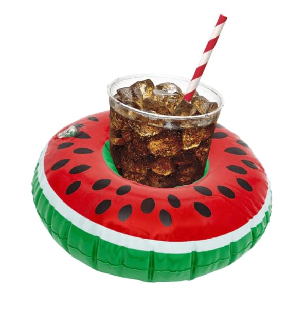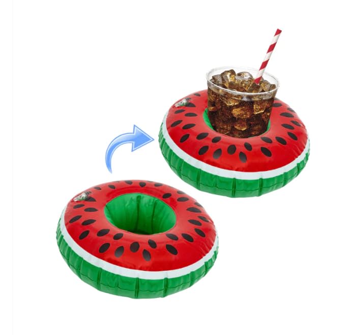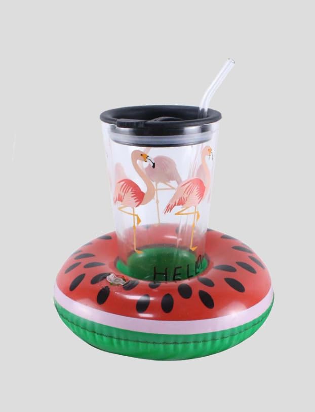 Generic - عوامة للأكواب بشكل بطيخ قابلة للنفخ مع كوب فلامنجو، حامل أكواب حمام السباحة مع شفاطة، اكسسوار للحفلات الصيفية مناسبة لشاطئ البحر ولحمام السباحة والعطلات الصيفية.