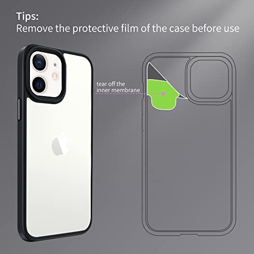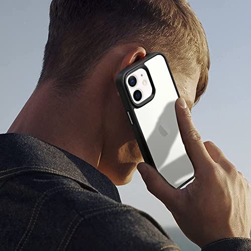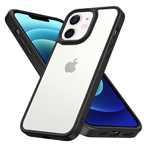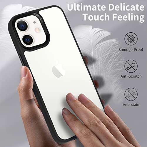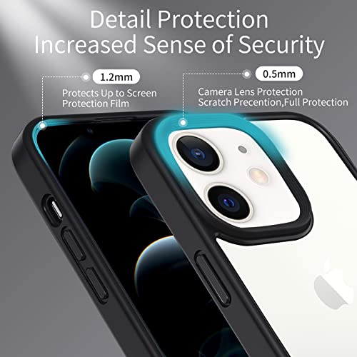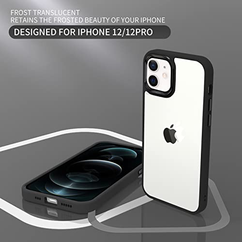 INFOSUN - انفوسن حافظة حماية رفيعة بلورية لموبايل ايفون 12-12 برو شفافة غير لامعة مع مفاتيح معدنية غطاء واقي مضاد للصدمات ومضاد للاصفرار متوافق ابل 12-12 6.1 بوصة - اسود