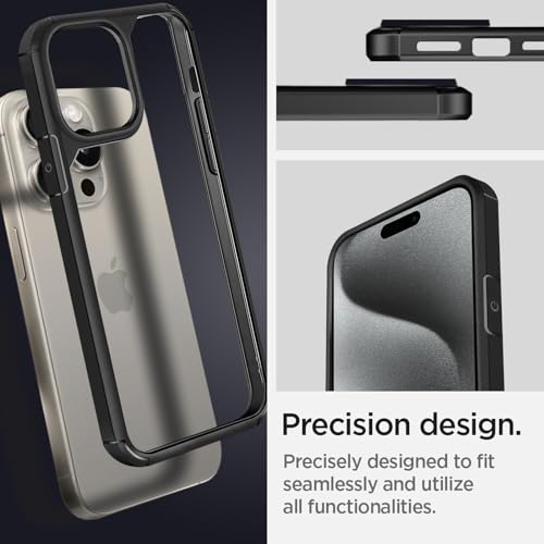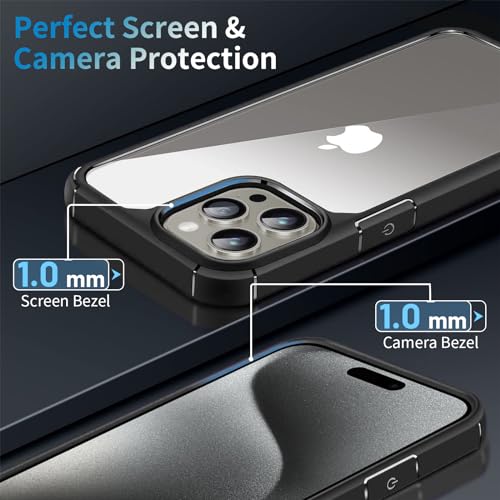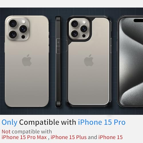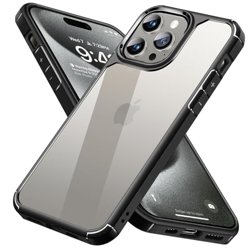 INFOSUN - جراب حماية شفاف رفيع من السيليكون بخلفية صلبة مضاد للصدمات لموبايل آيفون 15 برو من إنفوسن - بلون أسود