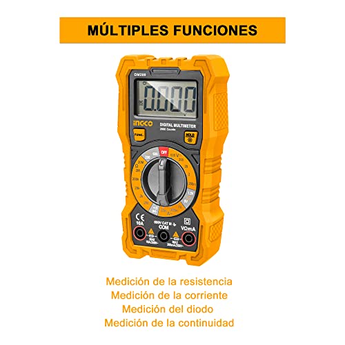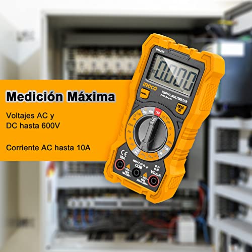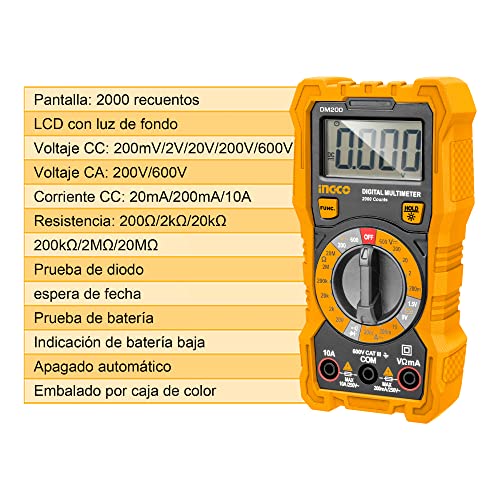 Ingco - جهاز قياس متعدد رقمي من انجكو 600 فولت مع نطاق العد 1999، شاشة LCD متعدد الألوان DM200
