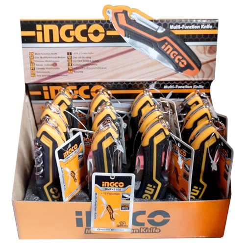 Ingco - انجكو سكين جيب متعدد الاغراض HMFK8108، 10 وظائف، فتاحة علب، فيليبس، فتاحة زجاجات، مفك براغي، مفك براغي، مبرد