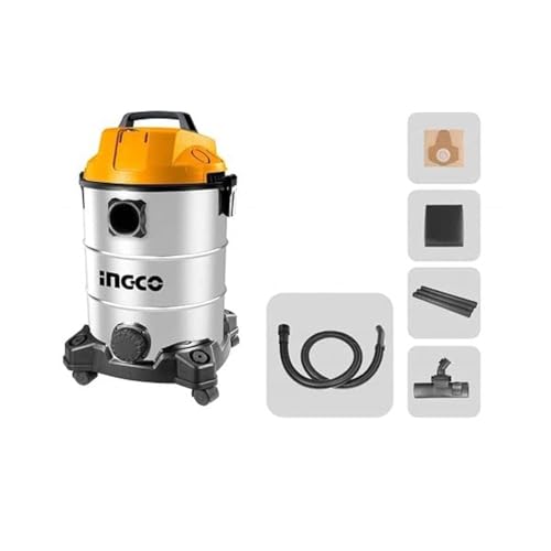 Ingco - مكنسة كهربائية 30 ليتر 1300 وات من الستيل VC13301، انجكو , عدد 1، 18 متعدد الألوان