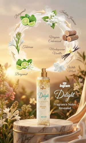 Ingram - عطر ديلايت بودي سبلاش، عطر شرقي للنساء برائحة الورد، برغموت والياسمين والفانيليا من انجرام، 240 مل