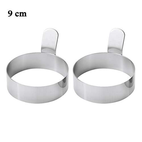 inhzoy - 2 حزمة من الفولاذ المقاوم للصدأ غير لاصق قالب بيض دائري قالب عجة للطهي البيض المقلي ميني فطيرة عجة قطعتين فضية 3.5 بوصة/ 9 سم، ستانلس ستيل، من ان هرزوي، متعدد الألوان