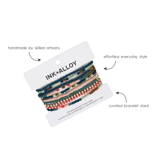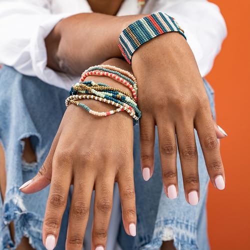 generic - اساور قابلة للتكديس من انك+ خليط معدني للنساء، مجموعة اساور صغيرة قابلة للتمدد من الخرز الصيفي بنمط بوهيمي، مجوهرات مصنوعة يدويا للبوهيمي العصري، مجموعة من 10 قطع (ازرق مخضر + خشخاش)