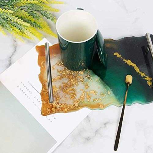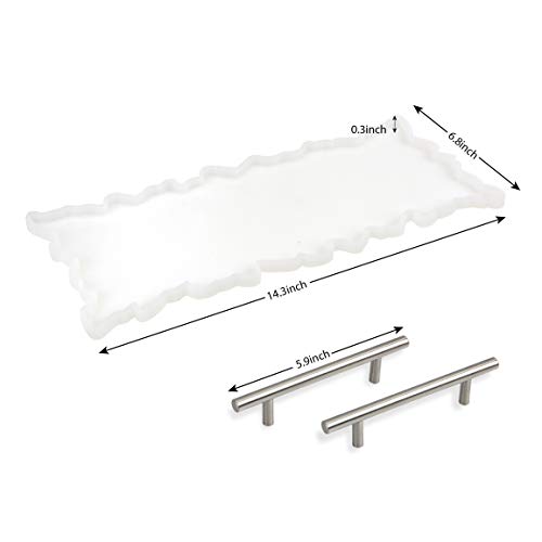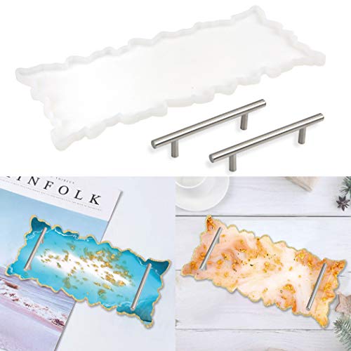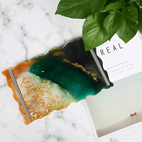 INK LAB - صواني الراتنج وصمغ الايبوكسي المزينة بالعقيق صواني من قوالب السيليكون مع مقابض فضية للتقديم، ديكور للمنزل