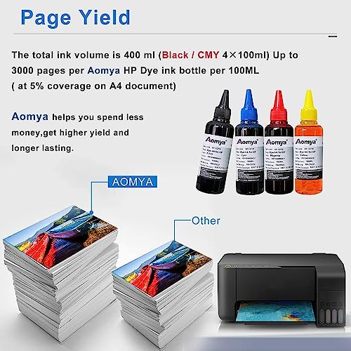 Aomya - مجموعة إعادة تعبئة الحبر 4 × 100 مل متوافقة مع طابعات اتش بي 61 60 62 63 564 920 901 902 932 933 934 940 950 951 952 94 95 96 مع 4 محاقن إضافية (3 أسود، أزرق سيان، ماجينتا، أصفر)