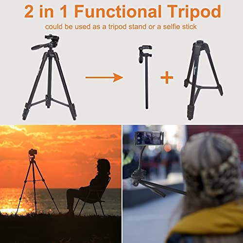 INKELTECH - حامل ثلاثي للهاتف Inkeltech - حامل ثلاثي خفيف الوزن قابل للتمديد 50 بوصة ، عصا سيلفي وحامل ثلاثي للهاتف 2 في 1 ، حامل ثلاثي محمول للسفر مع حامل للهاتف المحمول - الكمبيوتر اللوحي ، متوافق مع الهاتف الم