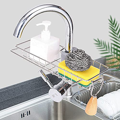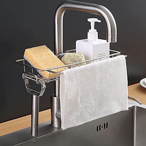 - تخزين متعدد الوظائف: صمم منظم حوض المطبخ بثلاث وظائف تخزين: سلة تخزين، فواطة، خطاف. مناسب لتخزين جميع أنواع أدوات المطبخ، مثل مقشرة الخضروات وفوط التنظيف وأدوات تنظيف النايلون والفرش والصابون والإسفنج وغيرها من الأشياء.