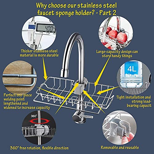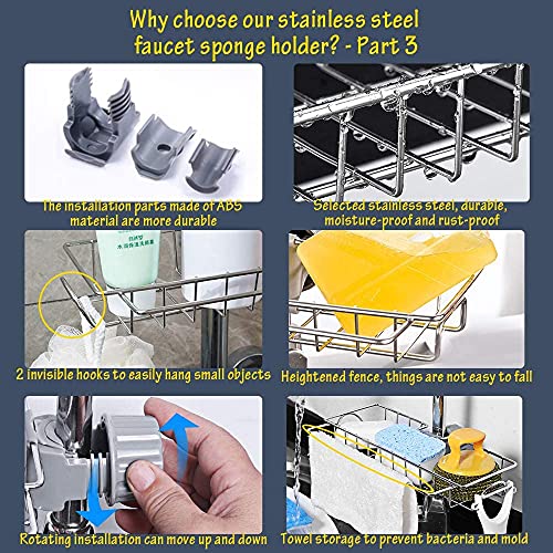- مقاس قابل للتعديل: رف تخزين الحوض المصنوع من الفولاذ المقاوم للصدأ، مناسب لقطر لأنبوب الحنفية بمقاس بين 1.9 سم و2.2 سم. يمكن لاكسسوارات الحوض ضبط إحكامها ويمكنك ضبط ارتفاع حامل إسفنجة المطبخ بسهولة وبشكل بسيط.