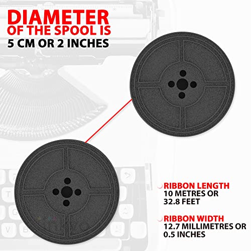 - يبلغ عرض البكرة الخاصة بنا 5 سم، وعرض شريط الآلة الكاتبة القماشي 1.25 سم إنها واحدة من أكثر أنواع أشرطة الآلات الكاتبة عالمية وتدعم معظم الآلات الكاتبة اليدوية وبعض الآلات الكاتبة الكهربائية!
