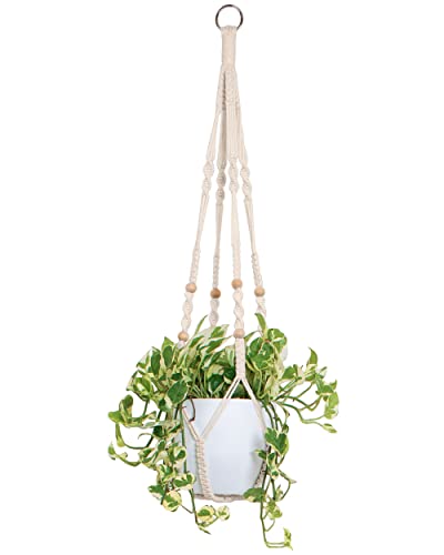 INLI - مكرامية نباتات داخلية من الخرز بمقاس 88.90 سم من انلي، علاقة نباتات من طبقة واحدة. حامل أصيص نباتات مقاس 12.70 - 25.40 سم. مكرامية نباتات بدون شراشيب.، قطن، من اينلي، متعدد الألوان
