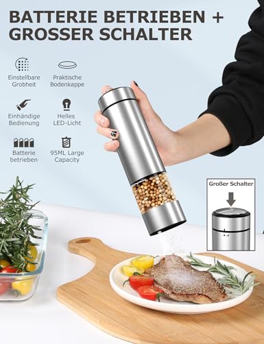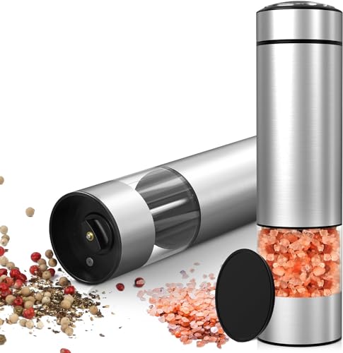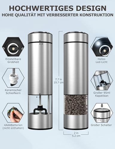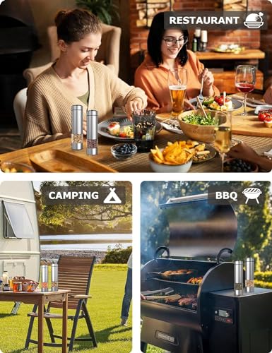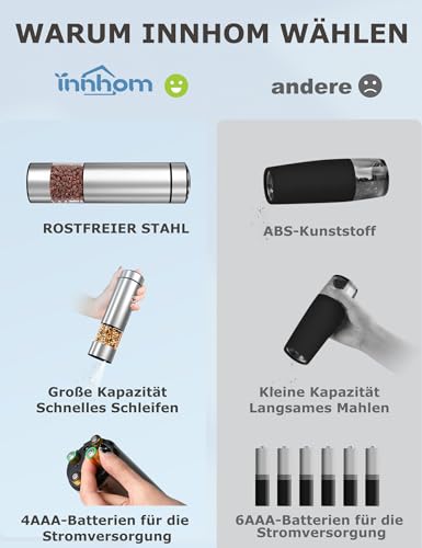 innhom - مطحنة ملح وفلفل كهربائية قطعتين قابلة للتعديل مناسبة لطحن التوابل آليا مع إضاءة ليد لاستخدامات الشواء والمطعم والمطبخ