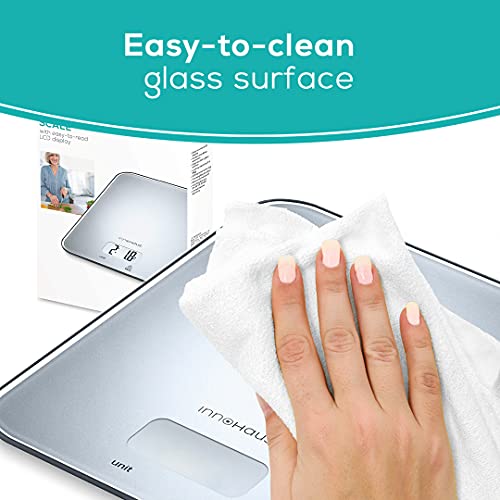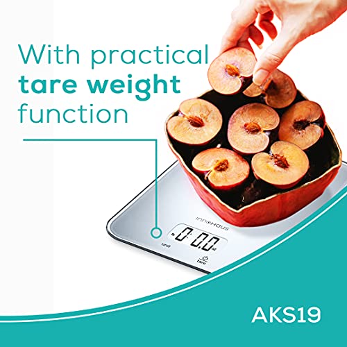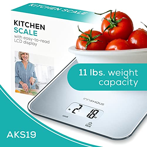 innoHaus - ميزان طعام مطبخ متعدد الوظائف بشاشة رقمية مع وظيفة وزن الفوارغ من اينو هاوس، ميزان دقيق، يقيس بالجرام، الأونصة، الرطل، المل، الأونصة سائلة، مع إيقاف تلقائي، لون فضي