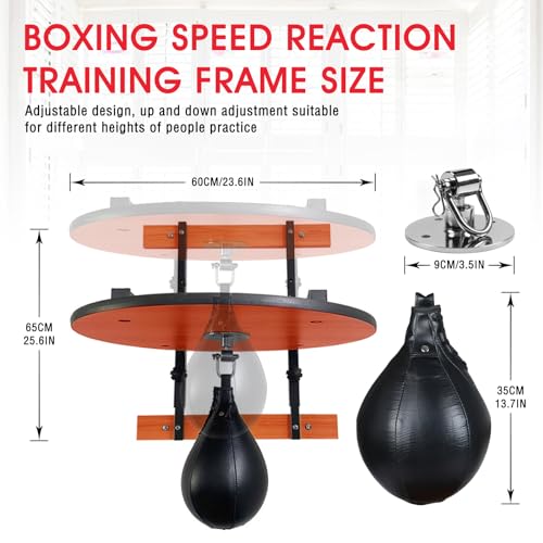 - معدات ملاكمة مثالية: منصة كيس السرعة ثبت على الحائط وتتيح أداء مجموعة متنوعة من تمارين الملاكمة القلبية وتعمل على تحسين التوافق الحركي البصري وزيادة سرعة وقوة اللكمات وتقوية الجزء العلوي من الجسم في نفس الوقت.
