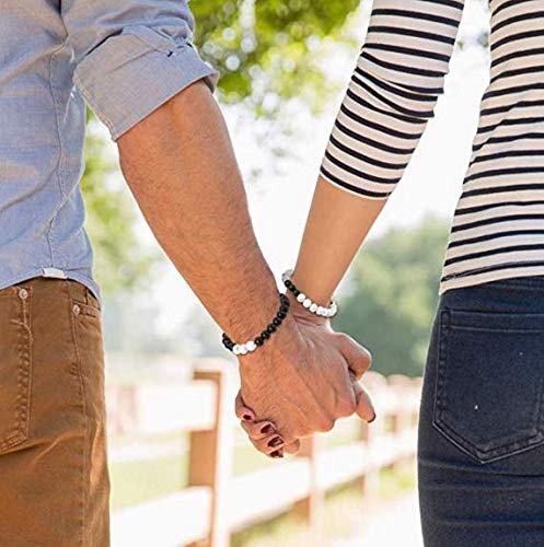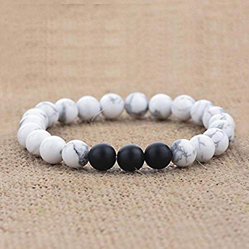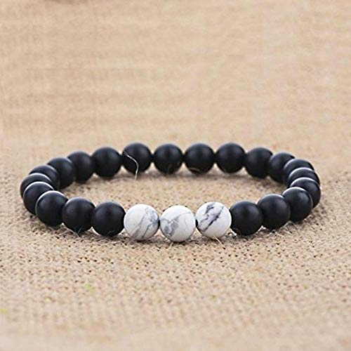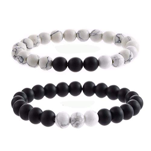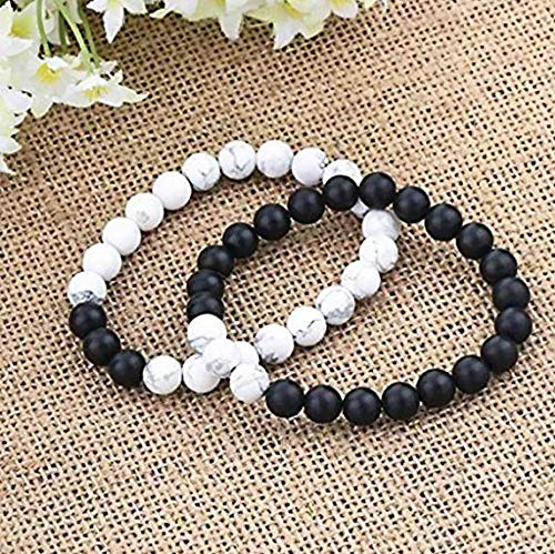 generic - سوار للازواج من اينو تيك من العقيق الاسود والابيض 8 ملم، سوار خرز من الحجر الطبيعي | قطعتين من اساور اليوغا المرنة المرنة | خصيصا للازواج من الرجال والنساء