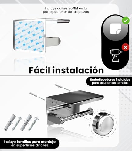 - تركيب بدون ثقب: يتم تركيب حامل ورق التواليت اللاصق هذا بسهولة باستخدام شريط 3 ام، مثالي لأولئك الذين يبحثون عن ملحقات الحمام بدون ثقب. يتضمن أيضًا براغي للتركيب الاختياري على الأسطح الصعبة.