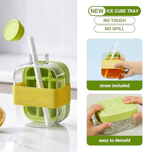 Esdallina - زجاجة قوالب مكعبات الثلج المحمولة 2 في 1 مع غطاء وصندوق بدون لمس ولا تنسكب سهلة التفريغ بضغطة واحدة، كوب لصنع الثلج مع شفاطة، 500 مل