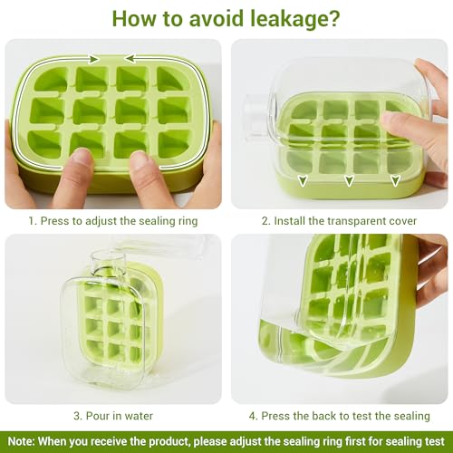 - إحكام ممتاز بدون انسكابات - ما عليك سوى ملء زجاجة قالب مكعبات الثلج بالماء حتى خط الحد الأقصى ووضع قالب مكعبات الثلج في الفريزر بدون أي انسكابات فوضوية. يعتمد قالب مكعبات الثلج المزود بغطاء محكم الإغلاق، حيث يتم إحكام غلق الغطاء تمامًا لمنع التدفق الزائد، ومنع التصاق مكعبات الثلج وتكوين رائحة كريهة.