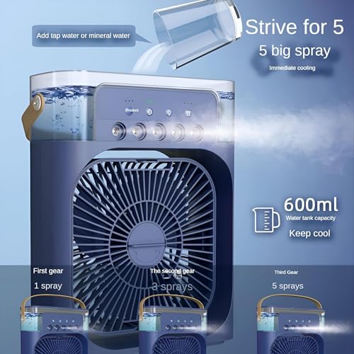 Generic - مروحة محمولة مبتكرة مع إضاءة بـ 7 ألوان و3 سرعات رياح قابلة للتعديل و3 إعدادات للرذاذ لتجربة منعشة أينما ذهبت