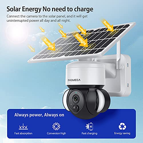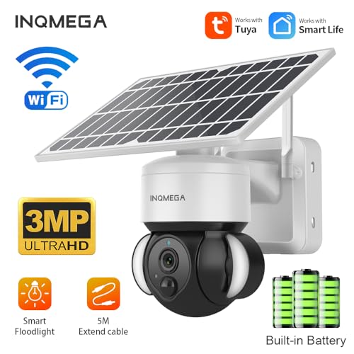 INQMEGA - كاميرا مراقبة تعمل بالطاقة الشمسية الذكية تعمل بالطاقة الشمسية 12000 مللي أمبير في الساعة بدقة 3 ميجابكسل عالي الدقة HD وصوت ثنائي الاتجاه ورؤية ليلية بالألوان وواي فاي 2.4 جيجاهرتز من تويا انك ميجا