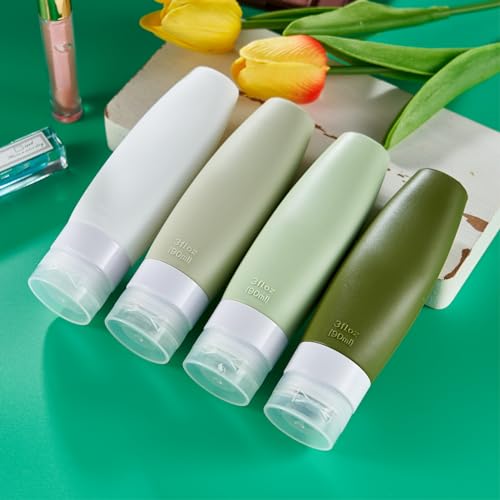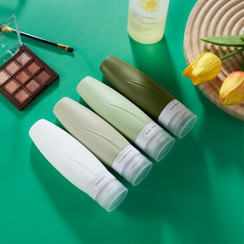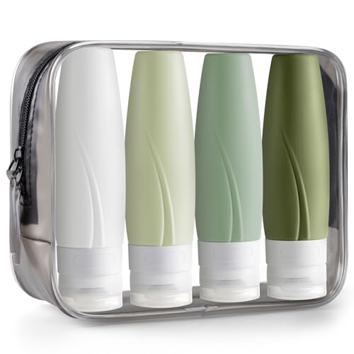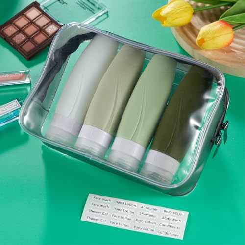 - معتمدة من إدارة أمن المواصلات الأمريكية: 4 عبوات من زجاجات السفر، زجاجات سفر من السيليكون سعة 60 مل، مثالية للشامبو والبلسم وغسول الجسم واللوشن وجل الاستحمام. معبأة في حقيبة أدوات تجميل شفافة عالية الجودة بسحاب لتوفير المساحة، سهلة الحمل للسفر أو التمرين في صالة الألعاب الرياضية.
