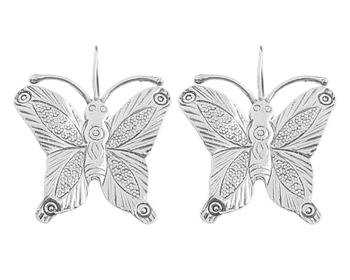 Generic - Insider اقراط اذن من الفضة عيار 925 على شكل فراشة كبير بتفاصيل رائعة نسائي - فضي اوكسيديه - TLERB4717