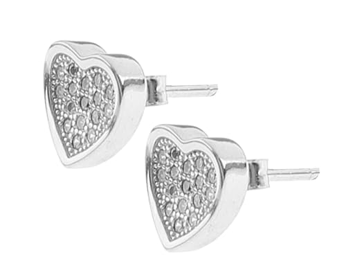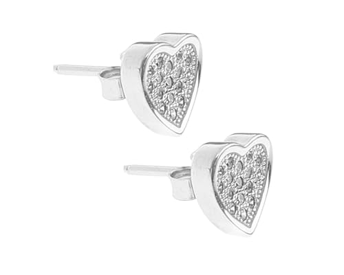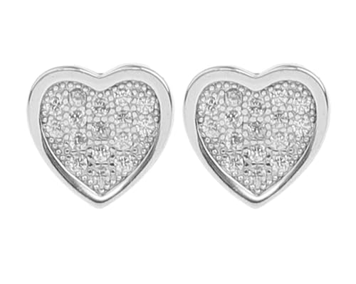 Generic - Insider اقراط اذن من الفضة عيار 925 على شكل قلب مرصع باحجار الزيركون الابيض داخل اطار سادة نسائي - فضي مطلي بلاتين - SWERA8855
