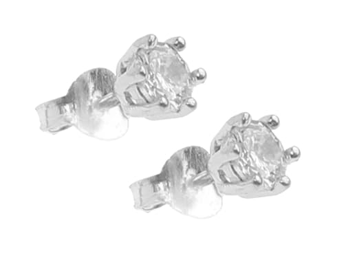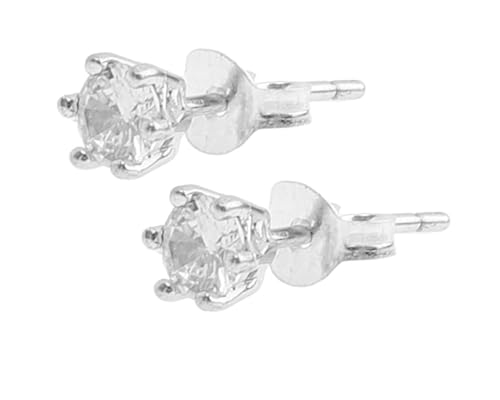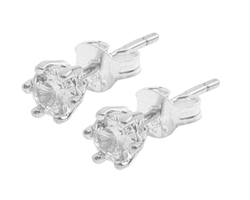 Generic - Insider اقراط اذن من الفضة عيار 925 موديل سوليتير بحجر واحد من الزيركون الابيض القيم داخل اطار من الاسنان الدقيقة بمقاس متوسط ناعم نسائي - فضي مطلي بلاتين - SWERA3247