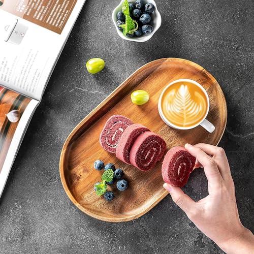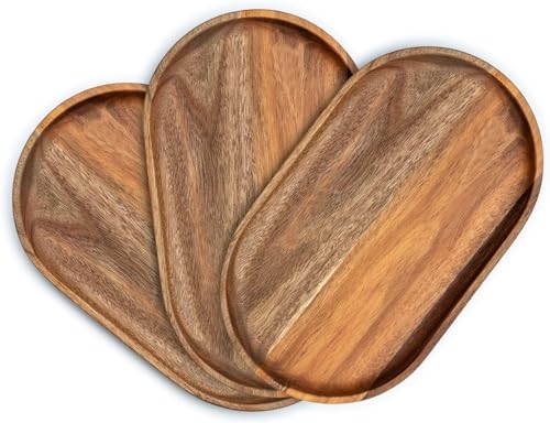 Insight Arts - مجموعة اطباق عشاء خشبية من انسايت ارتس مكونة 3 صواني تقديم خشب الاكاسيا واطباق مستطيلة مقاس 12 انش لتزيين المنزل طبيعي