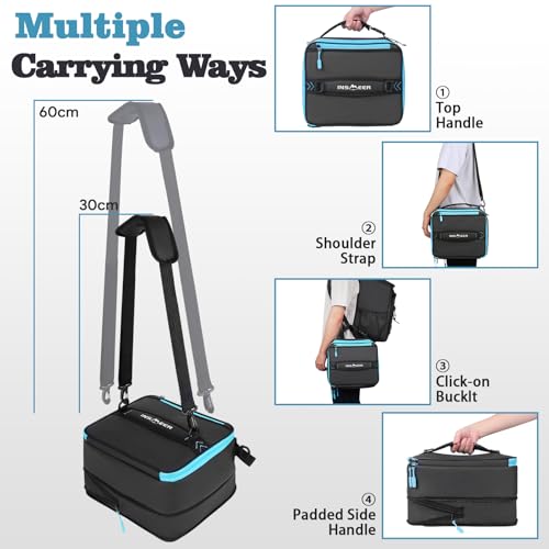 - 【نمط حقيبة الكتف واليد】يتميز صندوق الغداء للبالغين الخاص بنا بحزام مقوى موضوع بشكل استراتيجي على كل من الجزء العلوي والجانبي، مما يوفر خيارات متعددة للحمل اليدوي. إلى جانب ذلك، يأتي صندوق الغداء مزودًا بحزام كتف قابل للفصل وقابل للتعديل بالكامل، ويكمله قسم من وسادات الكتف الناعمة المنزلقة بسلاسة. يضمن مبرد الغداء هذا راحة ولطف لا مثيل له خلال جميع مغامراتك الخارجية، مما يمنحك حرية الاختيار من بين أنماط حمل متعددة!