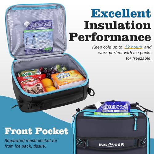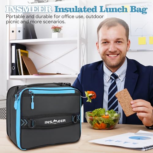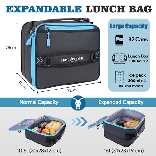 INSMEER - انزماير شنطة غداء معزولة قابلة للتوسيع، صندوق غداء للبالغين للرجال/النساء مع حزام كتف مقاوم للماء، حقيبة غداء ناعمة مبردة للعمل والنزهات والتخييم والسفر (16 لتر)