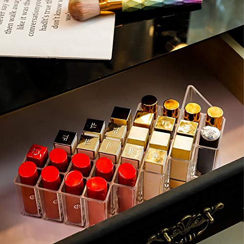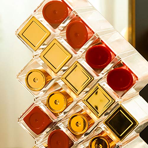 - المواصفات: موفر للمساحة، الحجم الاجمالي: 27 × 12 × 6.4 سم شبكة أحمر الشفاه 28: 2.54 × 2.54 سم لكل فتحة، تناسب منتجات أحمر الشفاه ذات القاعدة الصغيرة إلى الكبيرة أو مستحضرات التجميل الأخرى الخاصة بك.