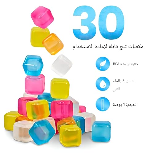Generic - مكعبات ثلج غير قابلة للذوبان - حافظ على مشروباتك باردة دون تخفيفها: مكعبات الثلج الملونة والقابلة لإعادة الاستخدام مثالية لأي مشروب، وسهلة التنظيف وجاهزة للاستخدام مرارًا وتكرارًا. (30 قطعة)