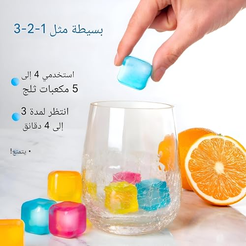 - استمتع ببرودة سريعة مع كفاءة ملحوظة؛ فقط ضع حفنة من مكعبات الثلج القابلة لإعادة الاستخدام في مشروبك وشاهده يبرد في غضون 3-4 دقائق فقط! إنها مثالية للتجمعات الصيفية أو الحفلات أو مجرد الاسترخاء في المنزل بعد يوم طويل.
