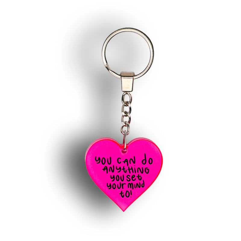 Generic - سلسلة مفاتيح على شكل قلب ملهمة، معدن زهري مع رسالة ايجابية، طول 5 سم، تصميم حلقة منفصلة