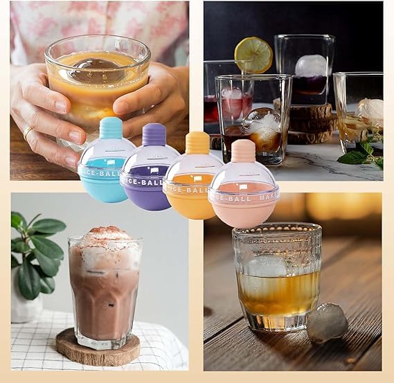 - ✅ (قاعدة من السيليكون المرن) توفر كرات ثلج مستديرة بسهولة وسرعة.