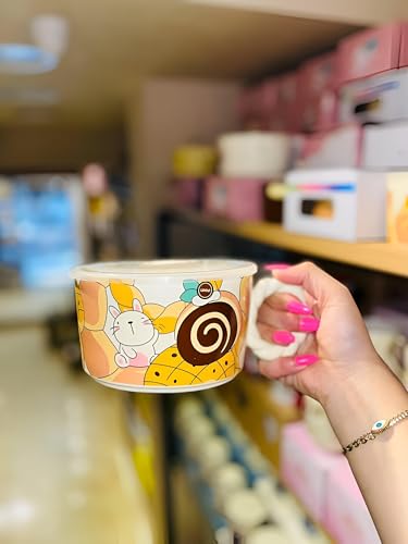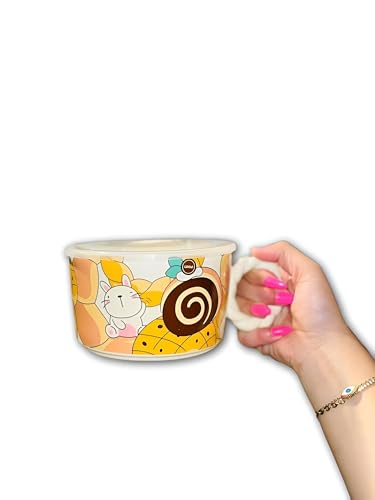 Generic - وعاء نودلز سريع التحضير، وعاء واسع من السيراميك مزود بغطاء ومقبض جانبي آمن للاستخدام في الميكروويف، مصمم من البورسلين المتين بلمسة يابانية عصرية لتحضير وتقديم النودلز بأناقة (موديل 2)