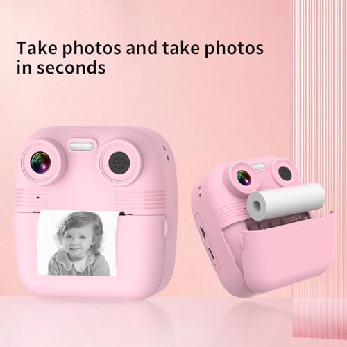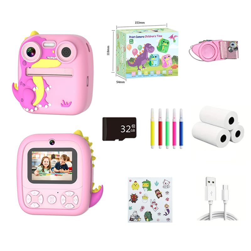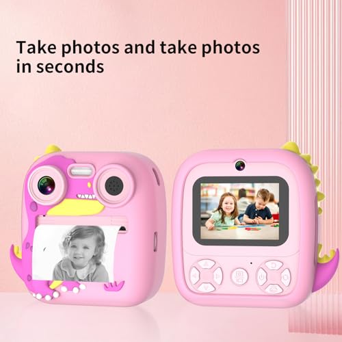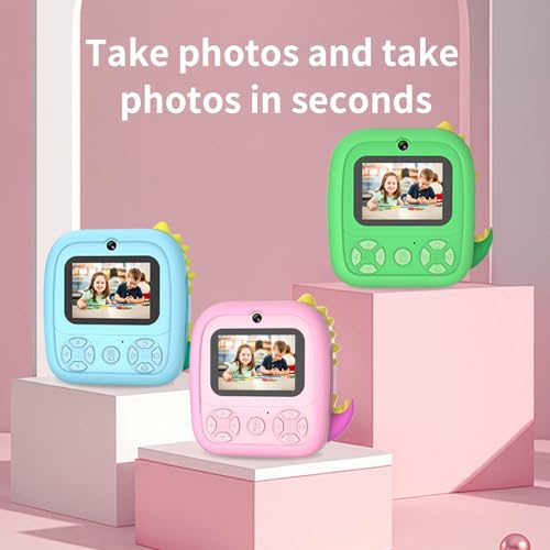 OKYUK - كاميرا طباعة فورية للأطفال كاميرا رقمية مع ورق طباعة وبطاقة ذاكرة تي اف بسعة 32 جيجابايت، كاميرا سيلفي بتصميم ديناصور مع أقلام تلوين وملصقات، كاميرا تعليمية للأطفال