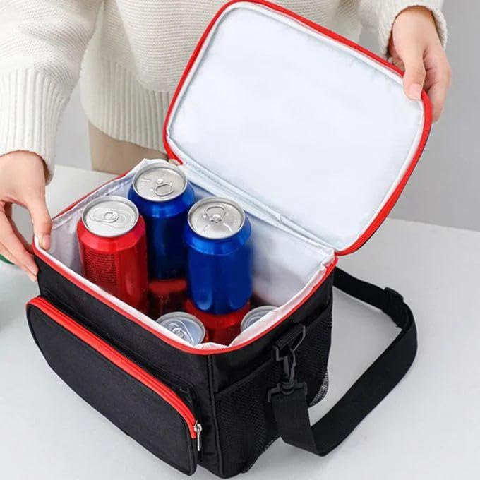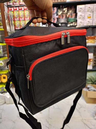 Generic - حقيبة معزولة بيد طويلة مع سحابين، أسود وأحمر، 23×25×17 سم، للمدرسة والرحلات والنزهات