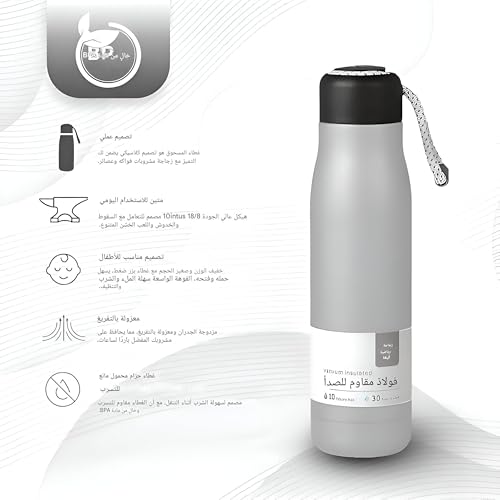 - تتميز زجاجة المياه هذه بعزل مزدوج الجدران مع طبقة عازلة من البولي يوريثين، مما يتيح لها الحفاظ على المشروبات في درجة الحرارة المثالية - ساخنة أو باردة - لمدة تصل إلى 24 ساعة، مما يجعلها مناسبة للاستخدام لفترات طويلة طوال اليوم.