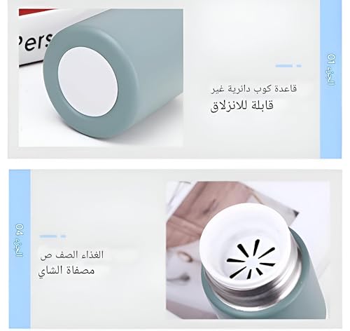 - تم تصميم هذه القارورة الحرارية المحمولة لتوفير الراحة، وهي تتميز بمصفاة شاي مدمجة، مما يسمح لك بالاستمتاع بالمشروبات الساخنة أو الباردة مثل القهوة أو الشاي أو العصير أثناء التنقل. يضمن تصميمها المقاوم للتسرب إمكانية حملها أفقيًا دون القلق بشأن الانسكابات.