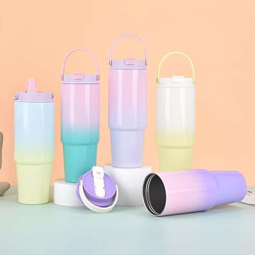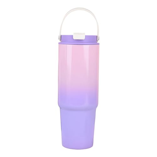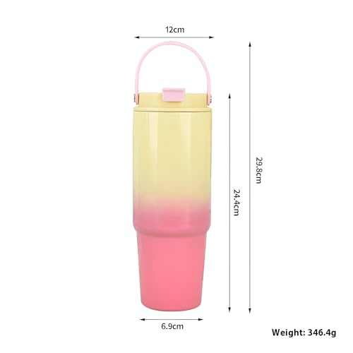 Generic - زجاجة معزولة - زجاجة مشروبات من الستانلس ستيل مفرغة من الهواء، سعة 900 مل، مع مقبض مريح وماصة مدمجة، تصميم حراري مزدوج الجدار للمشروبات الساخنة او الباردة، لون عشوائي مانع للتسرب.