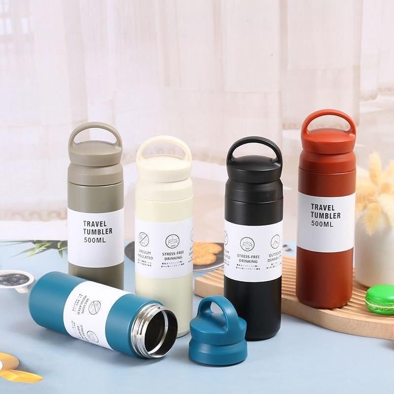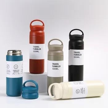 Generic - زجاجة مياه وترمس حراري معزول متين من الفولاذ المقاوم للصدأ بسعة 500 مل مُصمم بعزل مزدوج للتحكم في درجة الحرارة على المدى الطويل بغطاء مقاوم للتسرب محمول مناسب للمكتب والجيم والنشاطات الخارجية