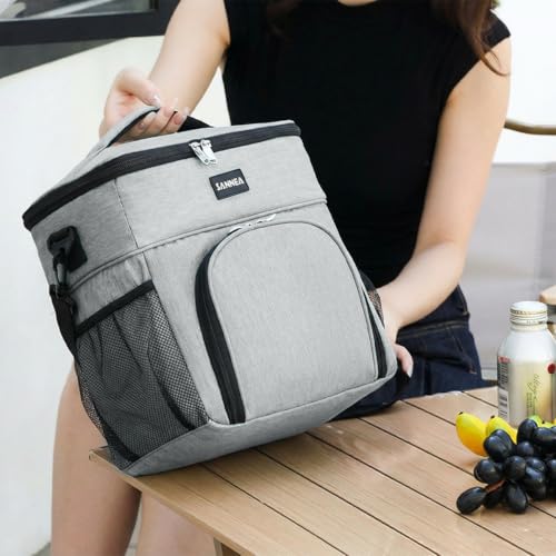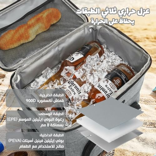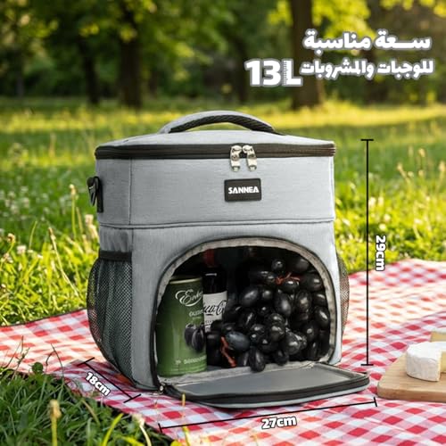 Generic - حقيبة غداء معزولة سعة 13 لتر، حقيبة غداء مبردة حرارية، حقيبة تخزين طعام مقاومة للماء ومانعة للتسرب للعمل والمدرسة والنزهات والسفر BB-527 (رمادي)